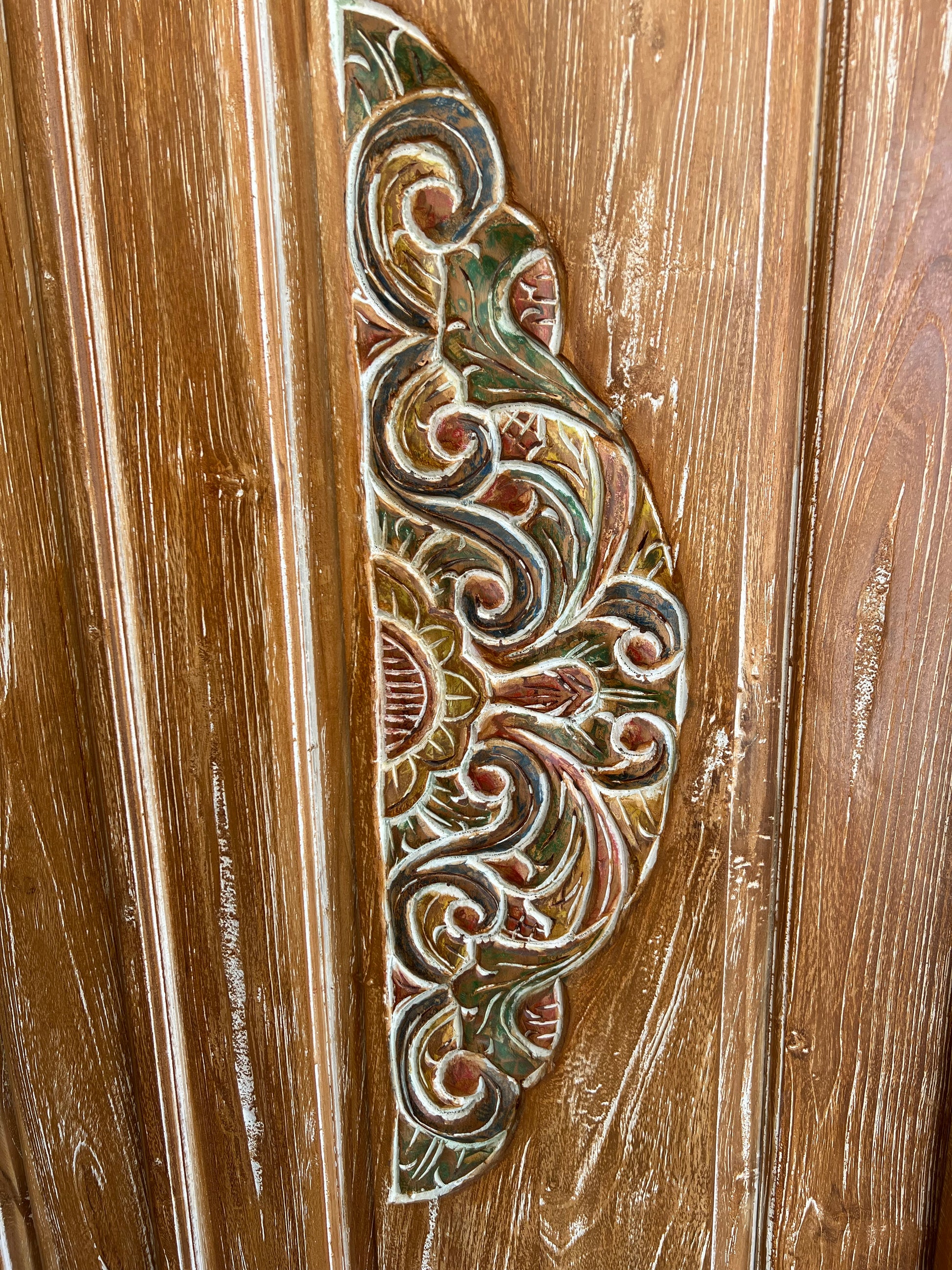 Balinese Teakwood Natural wash finish Door with hand Carved coloured panels
