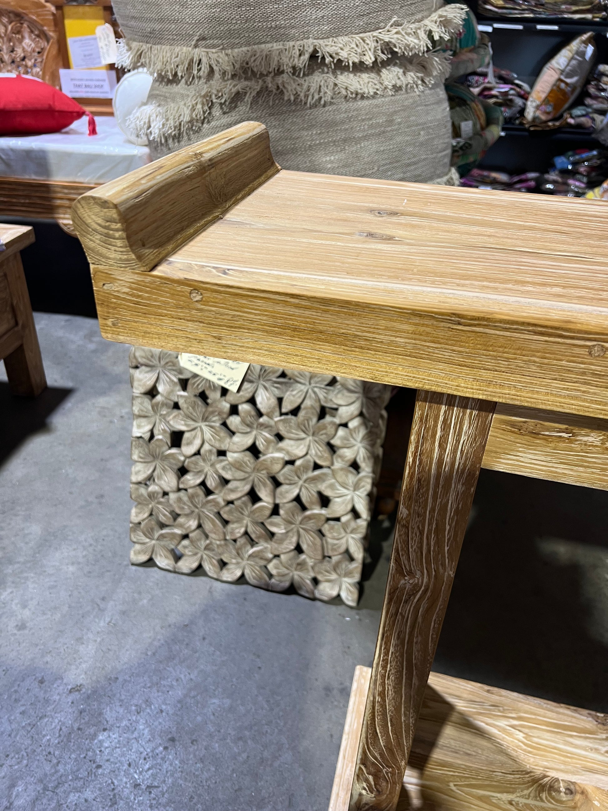 Mas Teak handcarved sides Consul table 100 cm lx 30cm d Creamwash finish