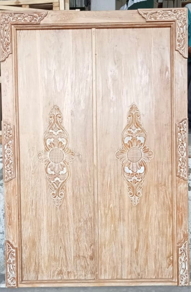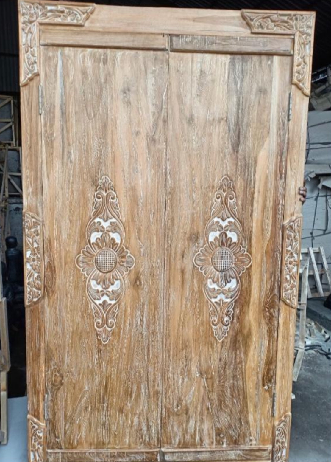 Recycled Teak Balinese Door Carved panels front and back 223cmx150cm natural wash