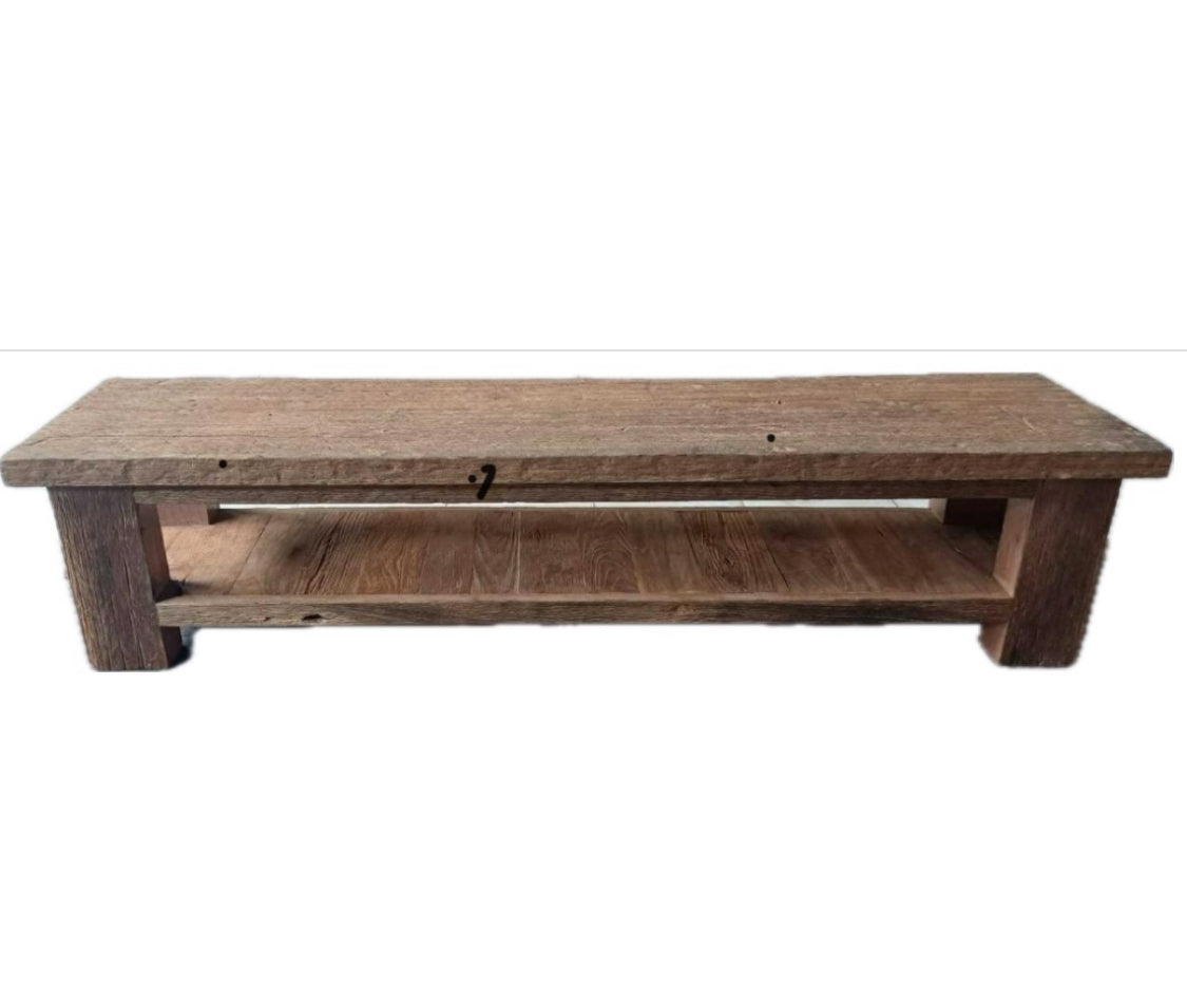 Teak wood old rustic single Log slabs handcrafted coffee table/ Lowline bench natural 160cm