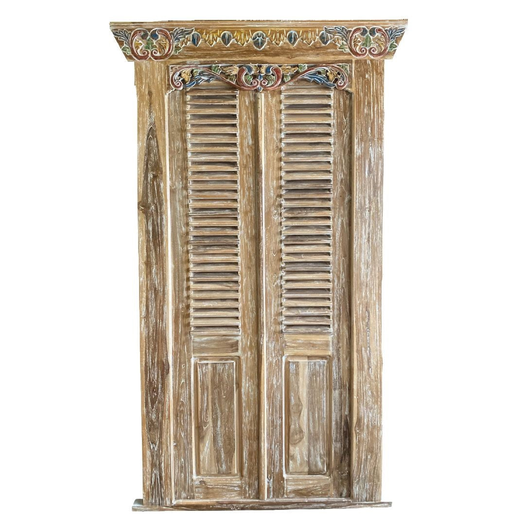 Balinese Recycled Teakwood Door Carved with Louvre panels